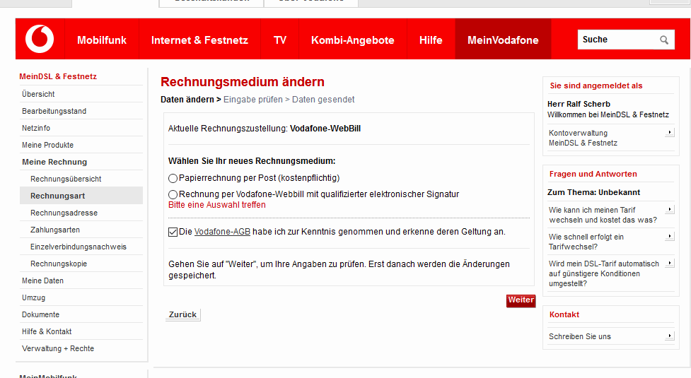 Ich habe auf Online rechnung umgestellt, möchte die Papierrechnung abbestellen