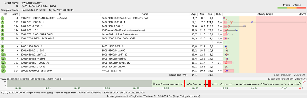 Welcher Fehler tritt auf? (Geschwindigkeit zu gering; Packetloss) Schick dazu auch Screenshots von Speedtests (mit Datum und Uhrzeit) und Tracerts/ Pingplotter-Messungen bei Packetloss oder Ping-Problemen Packet Loss, was zu Problemen in der Remote-Verbindung beim Arbeiten im HomeOffice führt & auch beim Spielen spürbar ist