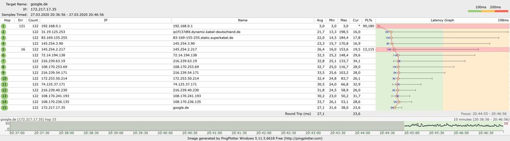 ich habe jetzt seit einigen Tagen immer wieder "loss" bei online Spielen und ganz selten einen Komplett Ausfall vom Internet.