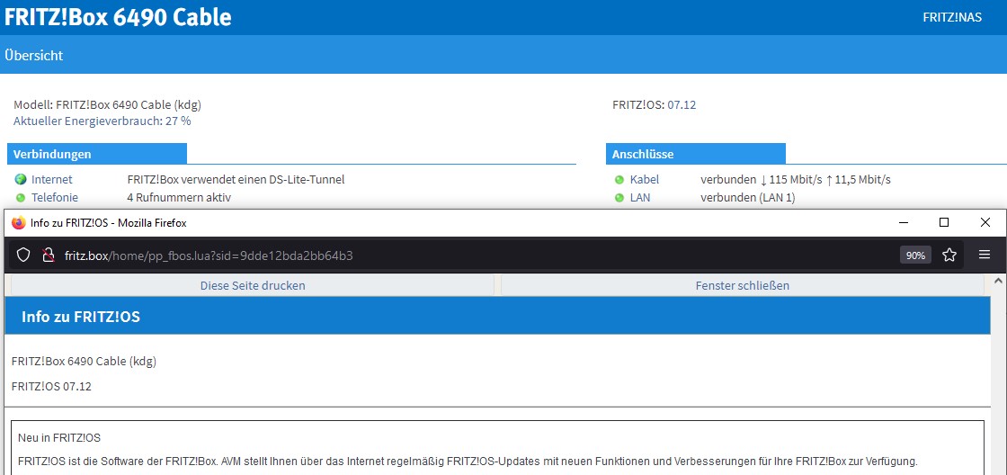 Hatte schon lange nicht mehr nach der Version geschaut, nun aber gesehen, dass die aktuell eingespielte Fritz!Box 6490 Version noch bei 7.12 steht.