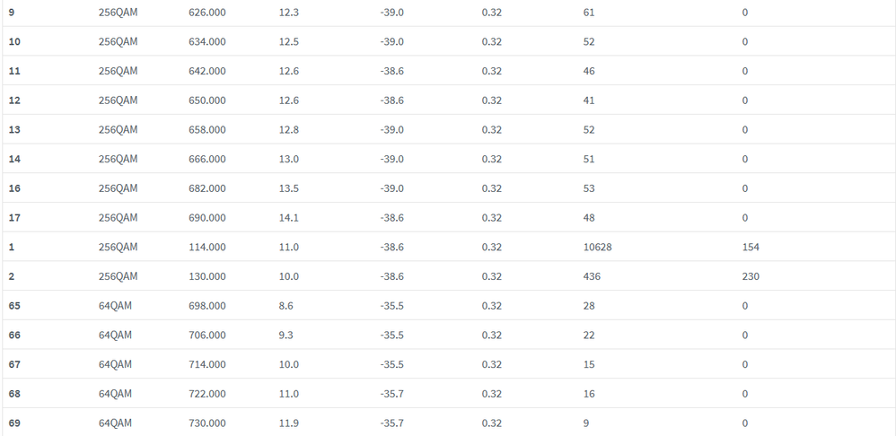 Ja, die Werte sehen jetzt schon wesentlich besser aus, obwohl noch 2 QAM64 Kanäle zu hoch sind. Max. ist da 12. Einige MSE Werte sind bei den 64QAM auch etwas niedrig, aber noch vertretbar.