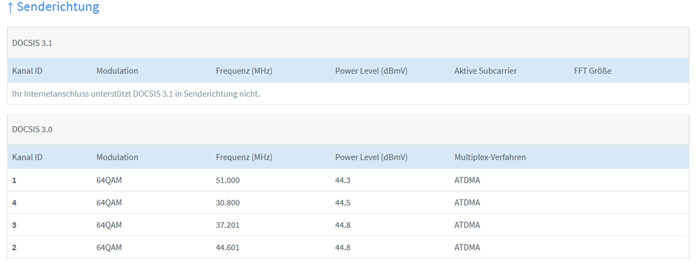 Was aber fehlt, ist der DOCSIS 3.1 in Senderichtung.