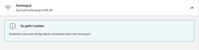 Leider bin ich auch nicht in der Lage im Kabelrouter mal den Bridgemode auszuschalten da sich Hotspot und Bridge gegenseitig verriegelt haben: