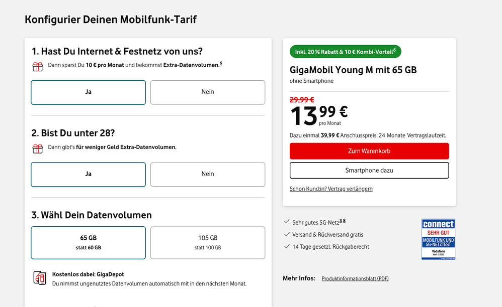 Die Aussage, dass die Young Tarife keine Gigakombi Vorteile erhalten ist nicht korrekt. Alle berechtigten Tarife findest du hier.