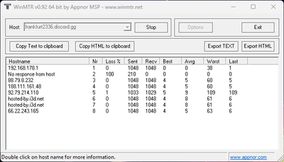 Als Kontrolle nochmal ein tracert gegen frankfurt2336.dicord.gg