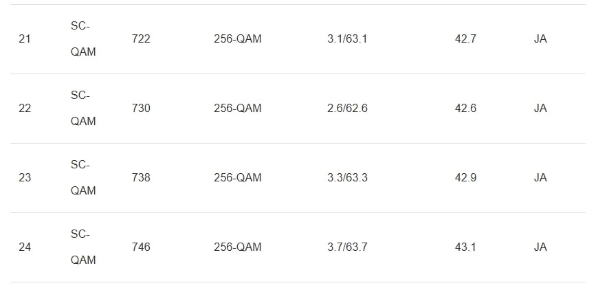 Ich habe die gewünschten Screenshots in den Anhang gepackt (Downstream-Kanäle: Screenshots 1-5)