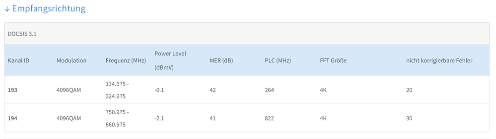 Ich habe eine Fritz!Box Cable 6600 mit Vodafone Cablemaxx Gigabit Tarif. Hier die Daten zur Kabelverbindung aus meiner Fritz!Box: