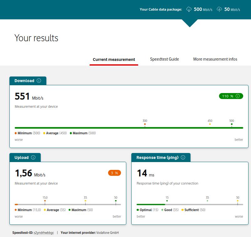 Ich habe ein Ticket eröffnet, da ich seit Wochen eine instabile Internetverbindung habe. Es kommt mehrmals am Tag zu Ausfällen (Neusynchronisation), zu extrem schwankeneden Paketlaufzeiten (11ms - 1000), zu Paketverlusten und fast dauerhaft extrem geringen Uploadraten.