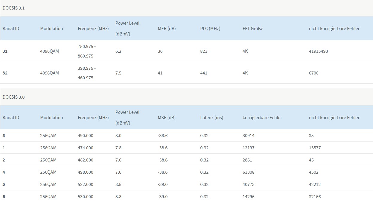 Hast du nur 3 DOCSIS 3.0 US-Kanäle?