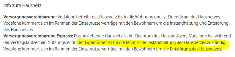 aber Vodafone müste die Leitung sanierien oder neu verlegen kostet Geld