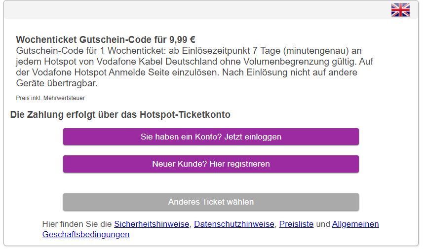 Ich hatte beim Kauf "ohne Hotspot Ticketkonto" angegeben. Wahrscheinlich liegt es daran. Es war für mich nicht ersichtlich, das ein Login zwingend notwendig ist. Wofür sollte es sonst die Option "ohne Hotspot Ticketkonto" geben?